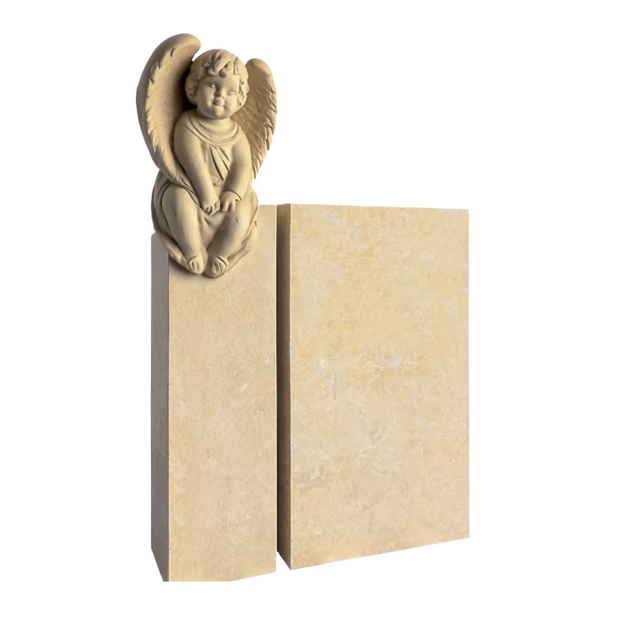 Ein Grabstein mit Engel (für Urnengrab beispielsweise) vereint spirituelle Bedeutung und ästhetische Eleganz. Die kunstvolle Darstellung eines Engels, sei es ein Schutzengel mit ausgebreiteten Flügeln oder ein trauernder Engel, der über das Grab wacht, vermittelt ein Gefühl der Ruhe und des Friedens.