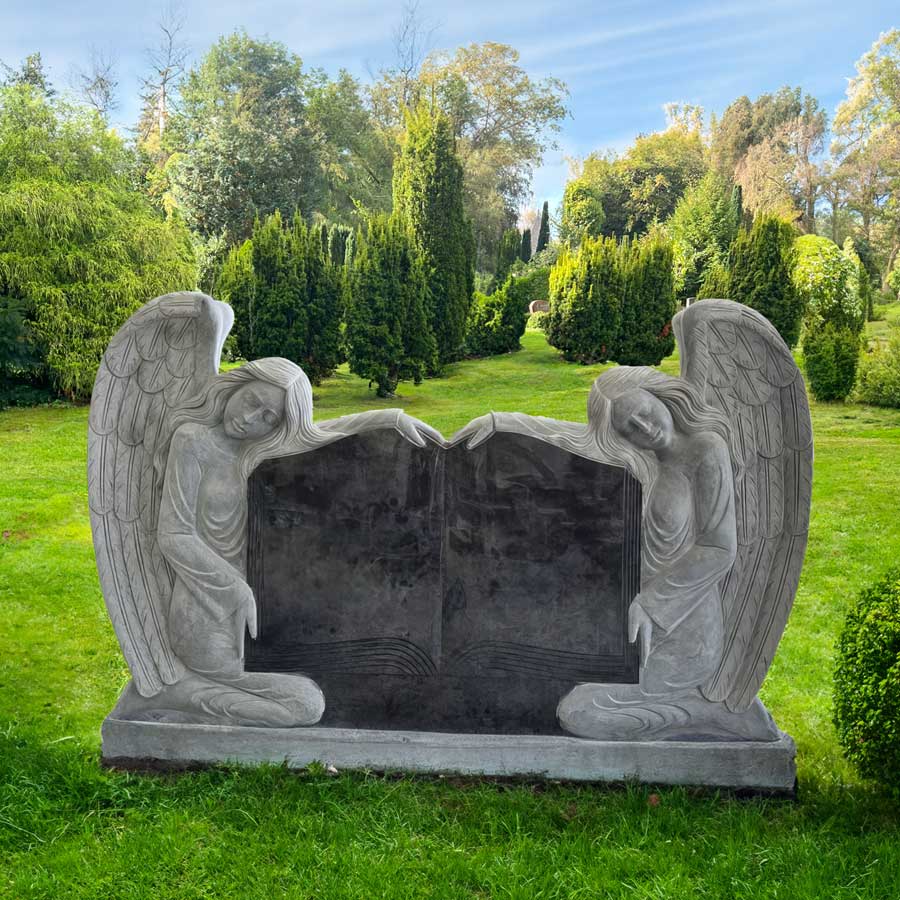 Das Design des "Uluru" zeichnet sich durch seine fein gearbeiteten Details aus, von den filigranen Flügeln der Engel bis hin zu den feinen Linien des Buches. Jedes Element des Grabsteins ist aus hochwertigen Materialien gefertigt, die Langlebigkeit und Widerstandsfähigkeit gegen Witterungseinflüsse garantieren.